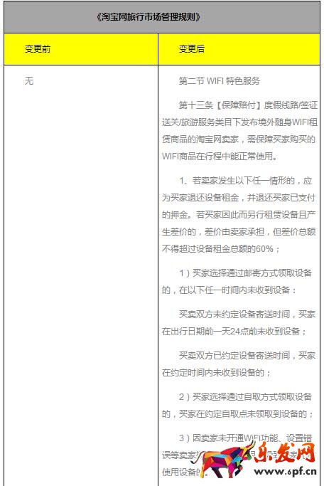 為進(jìn)一步規(guī)范淘寶網(wǎng)旅行市場的經(jīng)營秩序,有效提升旅行市場消費(fèi)者的購物體驗(yàn),淘寶網(wǎng)將修訂《淘寶網(wǎng)旅行市場管理規(guī)則》,新增WIFI保障賠付。