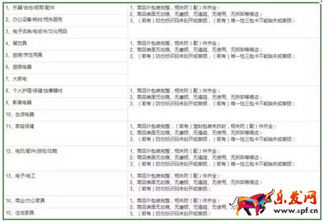 B、"七天無理由退貨"服務(wù)的商品品類劃分