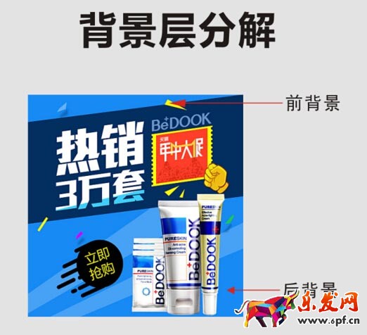 后背景是必須的,后背景的色調(diào)切勿搶走產(chǎn)品的視覺(jué)注意點(diǎn),要與產(chǎn)品的調(diào)性相協(xié)調(diào),突出產(chǎn)品,切勿喧賓奪主。中背景視情況而定,前背景一般起到裝飾畫(huà)面的作用。