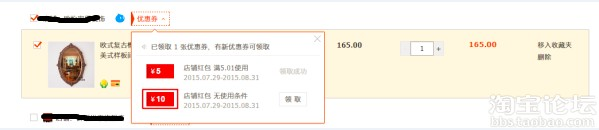 4、購物車:買家可以在自己的購物車看到店鋪紅包并領(lǐng)取。