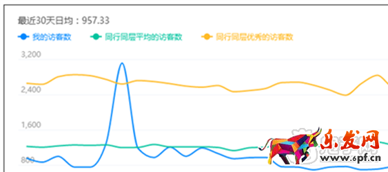 一般情況下,這個流量有沒有問題要綜合考慮。首先,這條線肯定是越高越好,但是一條健康的線應(yīng)該是在行業(yè)均值以上,優(yōu)秀線以下,也就是說藍(lán)線應(yīng)該在綠線和橙色線之間。這基本可以說你的訪客是正常的,是沒有問題的,如果一直在行業(yè)均值以下,那么你的訪客肯定出問題了。