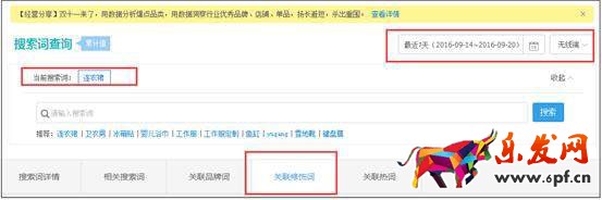 也就是說(shuō)你的這款寶貝,收腰的效果非常好。那么接下來(lái),你就順著這個(gè)“收腰”,搭配連衣裙這個(gè)詞,開(kāi)始布局長(zhǎng)尾詞。還是在剛才的搜索框里面,搜索“連衣裙收腰”這個(gè)詞。然后最近7天的數(shù)據(jù),要無(wú)線端的,然后點(diǎn)擊“相關(guān)搜索詞”