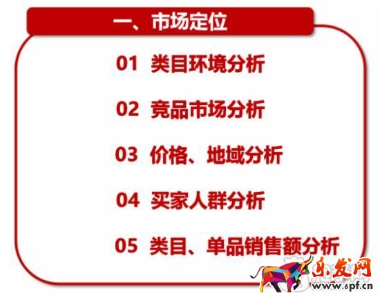 打造爆款前,我們首先要做的就是選款,在選款方面有兩大方面,分別是:市場定位和產(chǎn)品定位。市場定位主要從以下五個方面進(jìn)行定位分析。