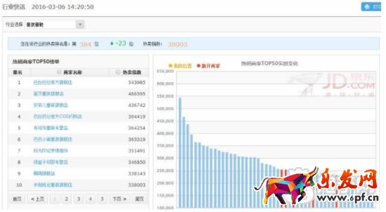 那我們看完了前端之后,來看一下我們的后端,下圖是通過京東數(shù)據(jù)羅盤統(tǒng)計出的top50的母嬰類目品牌,我們就可以在里面查看到別的店鋪是如何做活動的,怎么做詳情頁的,然后我們可以查看到這個類目top50的單品的詳情,我們可以參照優(yōu)化自己的店鋪。