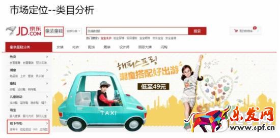 首先我們來講類目環(huán)境分析,以我們一個學(xué)員的店鋪作為案例,他的店鋪是美國某個童裝品牌,屬于二級類目童裝童鞋,從屬于母嬰類目,那我們來看看這個類目在做怎樣的活動呢?大家可以看到下圖的活動文案是:朝童搭配好出游。目前這個類目都在做春裝的促銷活動,我們就可以看有些哪些廣告位可以去爭取。