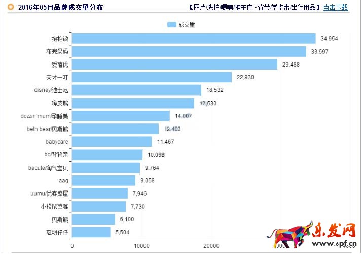 截取2016年5-6月的品牌成交分布情況:目前最大購(gòu)買(mǎi)量最多的品牌是抱抱熊、愛(ài)蓓優(yōu)、布兜媽媽?zhuān)@些品牌進(jìn)入市場(chǎng)較早,已經(jīng)占據(jù)了淘寶大部分的市場(chǎng)。對(duì)于后來(lái)者、或者是沒(méi)有線下實(shí)體品牌作為支撐的母嬰背帶產(chǎn)品,進(jìn)入市場(chǎng)也是會(huì)存在一定的風(fēng)險(xiǎn)。