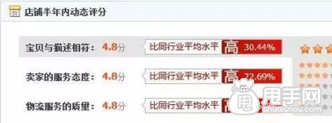 2、影響轉(zhuǎn)化率,買家都有從眾心理,尤其無線端現(xiàn)在是趨勢,看一下下圖手機淘寶店鋪的DSR評分情況直接被展示到買家,不多說。