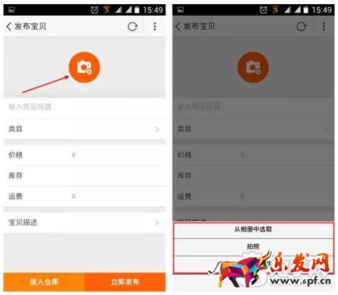 1)可以從相冊(cè)中選擇,已經(jīng)拍好的寶貝圖片,直接上傳。