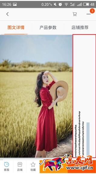 右上圖這張圖片看起來視覺還算是比較好的,但是還是有點浪費屏幕了,用紅色框框起來的地方大家可以看到,本來這張圖片是可以繼續(xù)放大的,左邊和右邊或者上邊都可以繼續(xù)表達產品的信息,但是左右兩邊都沒有充滿,本來手機屏幕就比較小,現(xiàn)在又浪費了一點屏幕,所以這是絕對不允許的。