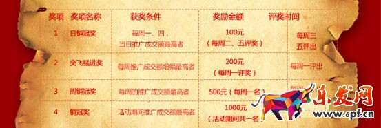 如上圖所示,設(shè)立日獎(jiǎng)、周獎(jiǎng)及總冠軍,再加上進(jìn)步獎(jiǎng),相當(dāng)于是給我們的淘寶客團(tuán)隊(duì)建立一個(gè)競(jìng)爭(zhēng)制度,幫助淘寶客做起來(lái)更加的努力,讓淘寶客不僅可以拿到基礎(chǔ)的傭金,做的好的淘寶客可以拿到更多的獎(jiǎng)勵(lì),刺激淘寶客多賣多得,而且通過(guò)這個(gè)方法也能找到一些有實(shí)力的淘寶客,將這些銷售額一直高的淘寶客建立起長(zhǎng)期的關(guān)系!