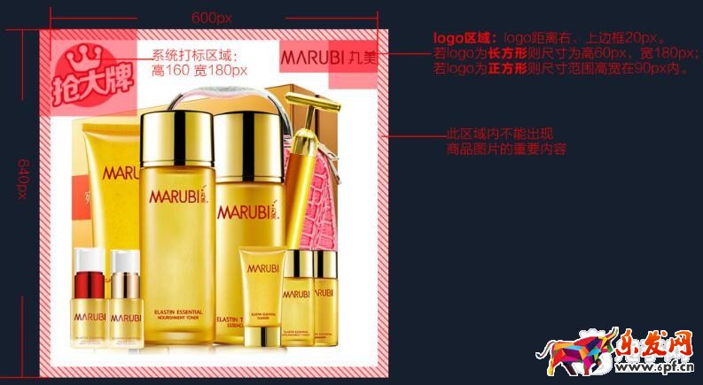 品牌商品,右上角必須放置品牌logo,logo區(qū)域距離右,上邊框?yàn)?0px。