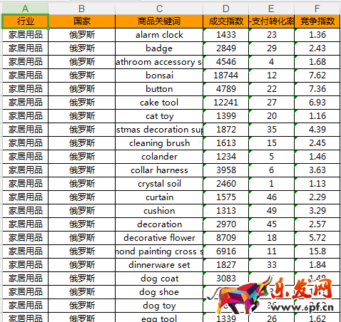 選擇品類,變換熱銷和熱搜詞以及國(guó)家,下載最近30天數(shù)據(jù)得到下列表格?! ?/p>