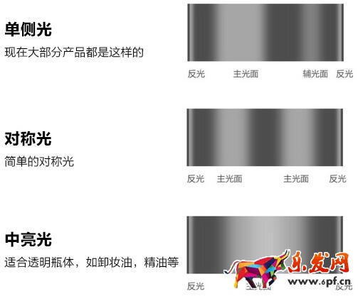 (不同材質(zhì)和瓶身所展現(xiàn)出來的光感不同,畫法也不同,磨砂身的光較為柔和,光滑的瓶身光較硬)