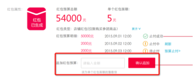 1)規(guī)則:紅包活動創(chuàng)建成功后在截至商品參團(tuán)結(jié)束前1小時可以追加紅包預(yù)算,過后不可修改;