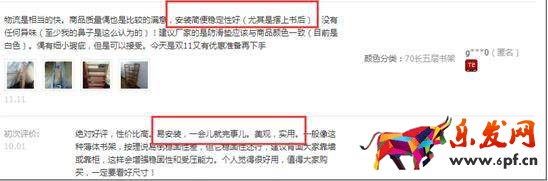 比如這種簡約風格的書柜,你點開累計評價詳情,看看前兩頁,你發(fā)現(xiàn)大部分的評價里面都會含有關鍵詞“安裝是否簡單”、“穩(wěn)定性如何”等等。那么說明這種東西,消費者關注的焦點,或者說影響他們是否轉(zhuǎn)化的障礙點就是好不好安裝。