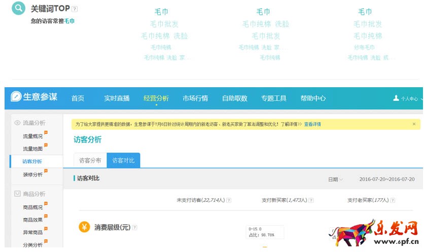 進(jìn)入生意參謀主頁面之后,在導(dǎo)航欄里有“經(jīng)營分析”這個(gè)選項(xiàng),點(diǎn)開之后在左側(cè)的菜單欄有“訪客分析”,點(diǎn)開之后選擇“訪客對比”拉到最下面會(huì)看到“關(guān)鍵詞TOP”,選擇最近30天的數(shù)據(jù),可以看到店鋪訪客最近30天最常搜索的詞,可以把這些詞加進(jìn)直通車進(jìn)行測試,分?jǐn)?shù)高的保留。