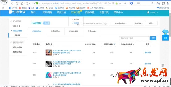 打開之后,選擇行業(yè)洞察——商品店鋪榜——行業(yè)粒度,就可以看見自己訂購類目商品的情況。重點看熱銷商品榜,是現(xiàn)階段淘寶上賣的比較好的商品的排名。那么我們要想檢測一下同行有上活動的店鋪,就按照交易增長幅度從高到低排序,因為一開始沒什么銷量突然銷量暴漲的一定是上了活動的??匆幌禄顒有Ч趺礃樱x擇第一的寶貝查看詳情,可以看到淘搶購活動的效果是很可觀的。這就是可以作為同行活動的參考,大家可以訂購好自己的類目一個個看下去。
