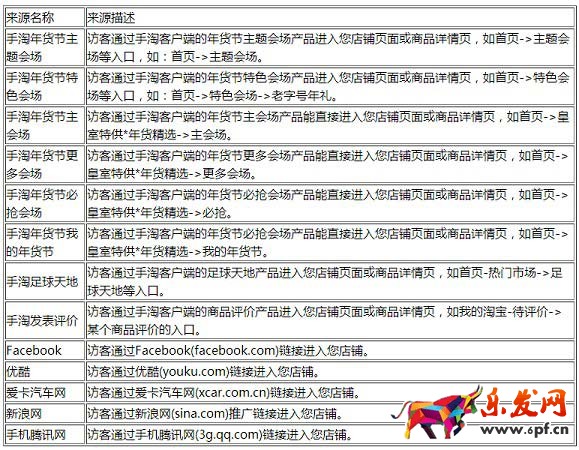 其他站外流量來源:手淘足球天地、手淘發(fā)表評價、facebook、優(yōu)酷、愛卡汽車網(wǎng)、新浪網(wǎng)、手機(jī)騰訊網(wǎng)。其他站外流量相比站內(nèi)有所降低,屬于正常情況。