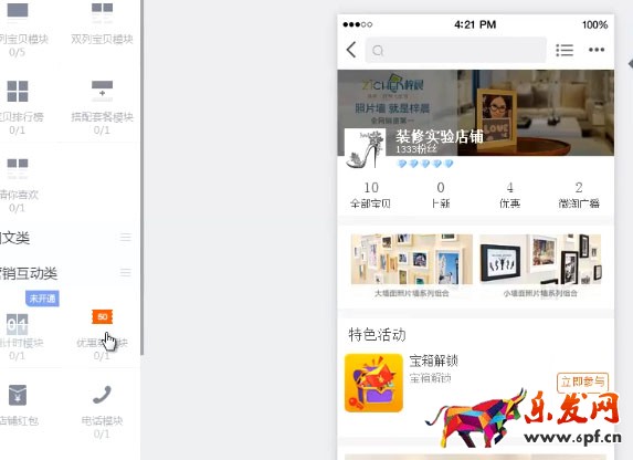 當(dāng)然也可以通過(guò)就進(jìn)入無(wú)線運(yùn)營(yíng)中心-店鋪裝修把優(yōu)惠券放在首頁(yè)。
