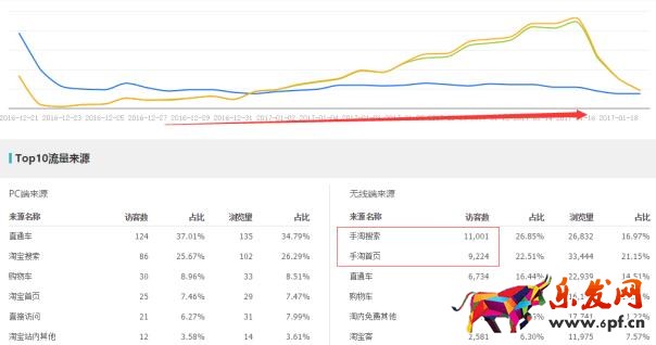1.手淘搜索,這個就是關(guān)鍵詞,你投放直通車關(guān)鍵詞,這方面流量會漲的很快。這部分流量的轉(zhuǎn)化率很高。