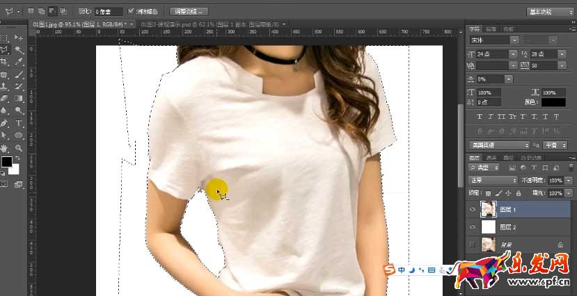 在這張圖里,背景和白色背景沒有融合在一起,接下來,依舊選用魔棒工具,對選區(qū)進(jìn)行建立,并適當(dāng)?shù)恼{(diào)整容差值