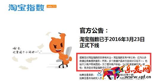下線了,官方給了一個冠冕堂皇的理由,可以看到紅色圈出來的部分。其實明眼人,只要稍微聯想一下,就知道了。馬總做的是平臺,開始的時候,什么都是免費,吸引人流量進來,培養(yǎng)人們的消費習慣,消費習慣培養(yǎng)出來的,商家想要做生意,必須根據消費者的習慣來整。好了,你想要整的好,就要去用別人的數據,淘寶的數據積累了這么久的時間,怎么可以一直給你免費使用,再加上阿里上市了,要的就是賺錢,這樣股價才會上漲,股東才會把錢放在這里,馬云的平臺才會更加值錢。
