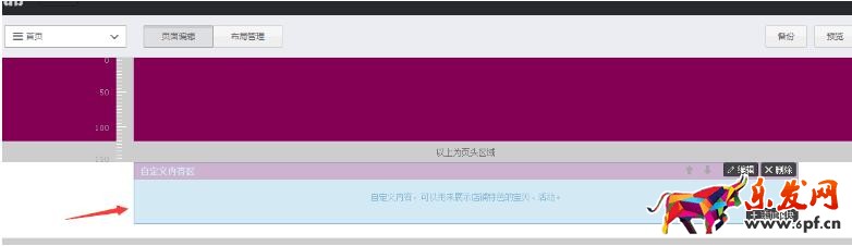 然后,到布局管理里面把淘寶的模板刪掉,自己添加一個(gè)自定義模塊(一個(gè)就行,把圖片全部放進(jìn)去)。