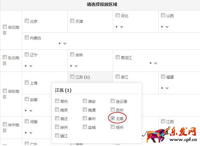 3、投放地域,我們只開啟成都、無錫、杭州、武漢、西安這五個城市。
