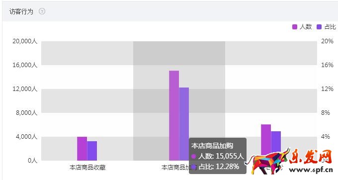 訪客行為中,店鋪的商品加購(gòu)比較高,占比12.28%,從客戶行為上判斷,對(duì)于店鋪活動(dòng)的時(shí)候提前預(yù)熱非常有必要,客戶自主加購(gòu)。