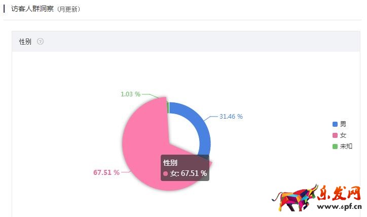 店鋪關(guān)于性別的用戶,女性用戶居多,占比67.51%,整體占比比較高。
