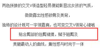 再看詳情頁文案,如果是我,我會把包臀效果寫的更突出,更吸引人,而不僅僅是埋沒在這里。因為你要注意,作為中小賣家來講,你一個產(chǎn)品搞定一個屬性詞就很不容易了。所以,如果你分析完了后,覺得包臀這個詞很不錯,那別猶豫,在你的詳情頁當中一定要不斷的去表現(xiàn)你的連衣裙在翹臀效果方面獨一無二的優(yōu)勢。