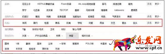 我們看這些,這些都是屬性層面的,比如風(fēng)格和領(lǐng)型這兩個(gè),不同風(fēng)格的衣服面對的目標(biāo)顧客群是不一樣的,不同的領(lǐng)型面對的目標(biāo)顧客群也是不一樣的。比如說,喜歡性感風(fēng)格的消費(fèi)者可能對民族風(fēng)的完全是不感冒的;一直穿翻領(lǐng)的消費(fèi)者可能對于圓領(lǐng)是不感冒的。