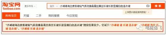 (1)標(biāo)題一定要自己寫,不要抄別人的,不要用供貨商直接給的數(shù)據(jù)包。標(biāo)題一定要根據(jù)自己店鋪的實(shí)際情況去寫,確定最適合店鋪基礎(chǔ)的主詞,然后用生意參謀去選詞,店鋪基礎(chǔ)好,就可以用大詞,店鋪基礎(chǔ)不好就用二級詞作為主詞,比如你是一個(gè)新店,在生意參謀選詞的時(shí)候,就不要用連衣裙這么大的詞,你可以用“連衣裙長袖”作為主詞去選擇長尾詞。你寫好標(biāo)題以后,在淘寶搜索框全標(biāo)題搜索一下,看一下是否會出現(xiàn)這個(gè):