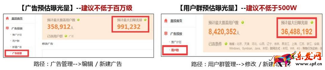 2、用戶群預(yù)估曝光量合理,勿過于精準(zhǔn)(用戶群預(yù)估曝光量建議不低于500w)