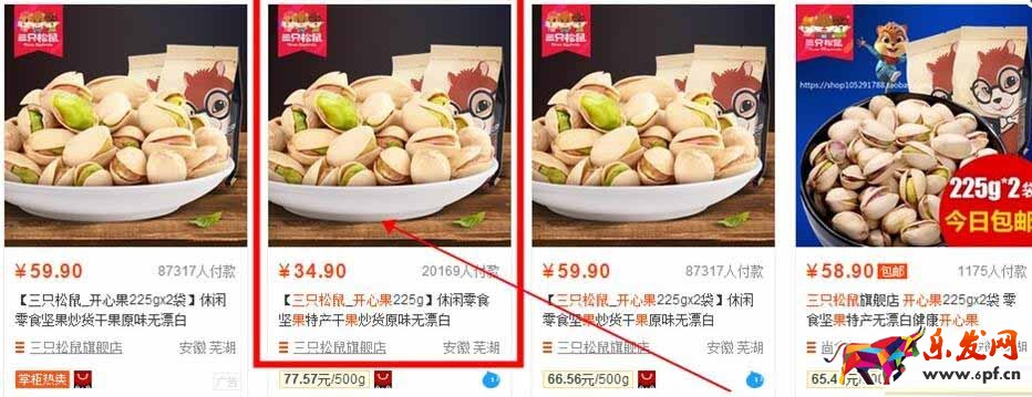之前沒搜索過零食這個(gè)類目的伙伴,看下這些圖片有什么感受,站在顧客的角度去看你會(huì)不會(huì)點(diǎn)擊?會(huì)不會(huì)購買?當(dāng)然像三只松鼠這樣的,品牌知名度很大的產(chǎn)品,基本不存在說看圖片點(diǎn)擊,人家直接認(rèn)準(zhǔn)的就是這個(gè)品牌了,所以看其他的就好。