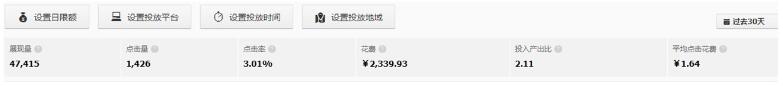 圖1和圖2分別是一款寶貝的上個(gè)月與近30天的直通車單個(gè)計(jì)劃的投放數(shù)據(jù),可以看到,近30天的直通車單個(gè)計(jì)劃的投放數(shù)據(jù)遠(yuǎn)沒有上個(gè)月的轉(zhuǎn)化效果好。