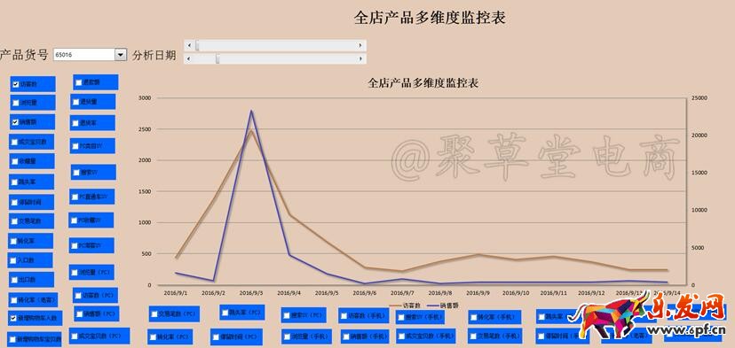 我會記錄每天甚至每個小時的單品數(shù)據(jù),然后做成這樣的趨勢圖。發(fā)現(xiàn)其中某個數(shù)據(jù)出現(xiàn)下滑時要去怎對性的查找和處理問題,根據(jù)前面所講的核心因素,去觀察產(chǎn)品的相應(yīng)的數(shù)據(jù)指標(biāo) 。