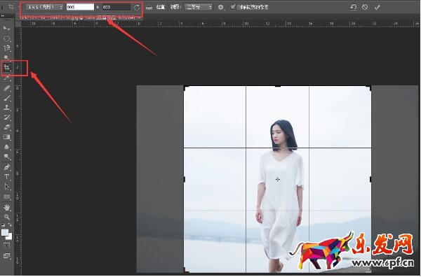 首先打開我們的ps工具,先開始處理橫的長方形圖片,一般這樣圖片我們可以通過裁剪工具對圖片進行裁剪就可以了。選擇裁剪工具,對你的圖片大小設(shè)定一下,然后按enter鍵就完成了這張圖片的處理,是不是很簡單。有木有?