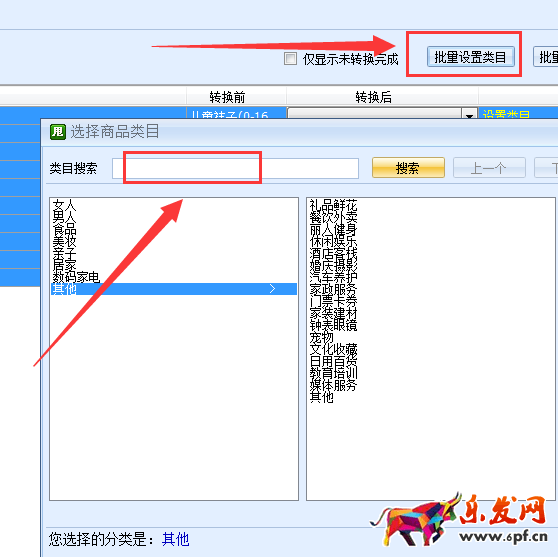 7.轉(zhuǎn)換商品類目,同類目的商品可以批量設(shè)置商品類目。