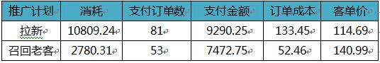 根據(jù)表數(shù)據(jù)可以看到,召回老客計劃的訪客成本明顯高于拉新,但轉(zhuǎn)化效果中投產(chǎn)比遠遠大于拉新。不妨再結(jié)合店鋪商品的毛利率,計算老客召回推廣的真實效益。