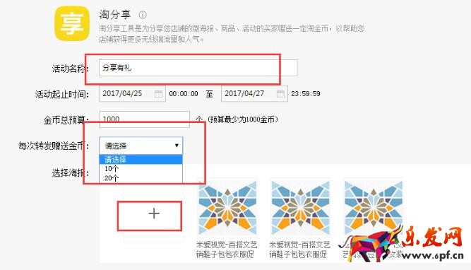 你還可以通過(guò)官方活動(dòng)對(duì)你的微海報(bào)進(jìn)行推廣,這里就會(huì)用到官方工具淘分享,也是在店鋪營(yíng)銷中心中找到的,這個(gè)是需要花費(fèi)你淘寶金幣的,當(dāng)有人分享了你的海報(bào)給其他人了,或者分享出去了,就會(huì)得到淘金幣。數(shù)量你可以設(shè)置的。如果你有足夠的淘金幣的話,可以嘗試下,會(huì)有意想不到的效果的!對(duì)于新品破零還是不錯(cuò)的方法。