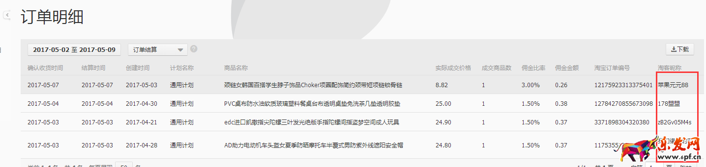 這種方法都可以選擇需要的時間段,下載表格,更方便觀察和篩選。需要注意的是效果報表里的信息是要到訂單結算后才會產(chǎn)生。而且只能顯示淘客昵稱。