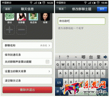 我們還可以給聊天群取一個(gè)名字:點(diǎn)擊群聊對(duì)話框右上角圖標(biāo),進(jìn)入“聊天信息”頁(yè)面,選擇“群聊名稱”,OK,輸入我們想要的群名稱再保存就可以了。