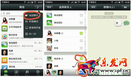 打開手機(jī)微信,在微信主界面中選擇右上角圖標(biāo),點(diǎn)擊“發(fā)起聊天”(或者先進(jìn)入通訊錄頁(yè)面,點(diǎn)擊右上角“群聊”),在“選擇聯(lián)系人”頁(yè)面中,我們?cè)趯⒁?qǐng)的好友后打鉤,可以邀請(qǐng)最多20人進(jìn)入同一聊天群。點(diǎn)擊頁(yè)面右下角“確定”,進(jìn)入微信群聊對(duì)話框。這樣我們就可以把我們的消息同時(shí)發(fā)送給聊天群內(nèi)的每一個(gè)人。4`H8h3\^H