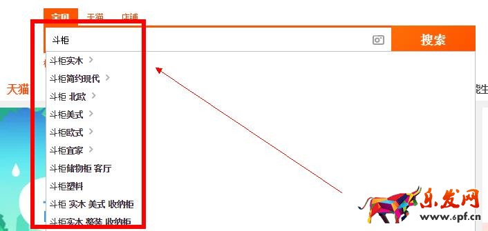 還有第二個免費(fèi)的選詞方法,第一步直接在搜索框搜斗柜,淘寶下拉框會有這個詞的相關(guān)搜索詞,只要是下拉框推薦的就是有人搜索過有數(shù)據(jù)的詞,尋找二級詞,首先推薦的是斗柜實(shí)木這個二級詞,我們就先來搜索斗柜實(shí)木。