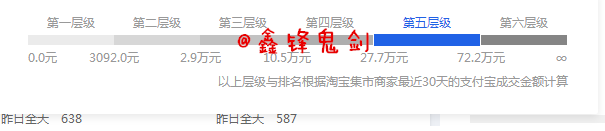 可以看新店都處于第一層級(jí),幾千塊就到第二層級(jí),幾萬(wàn)塊就到第三層級(jí),幾十萬(wàn)才到第五層級(jí)。所以前邊的層級(jí)門檻低,越到后邊門檻越高。