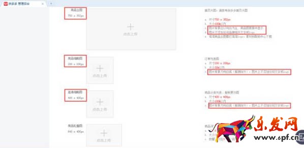 商品主圖的大小是750*352px,略縮圖為200*200px,高清略縮圖為400*400px,三張圖都必須是無logo、無文字的白底圖;商品輪播圖尺寸為640*400px,展示在商品詳情頁上方,兩邊留白不能太多;詳情頁的圖片建議用PS制作,尺寸為640*960px,大小不得超過100kb,數(shù)量控制在3-20張左右。
