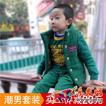 如下圖,為“潮男套裝”加上一個(gè)稍大的方塊,再添加一個(gè)投影效果,大大增加了立體感,讓買家第一眼就集中在“潮男套裝”這四個(gè)字上。