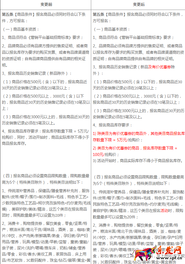 日常單品招商規(guī)則變更詳情如下圖所示: