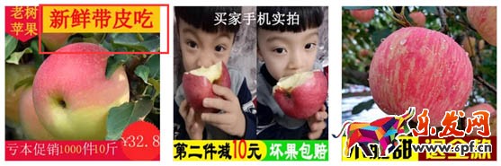 另外一方面,你也可以在首圖中,通過對比打蠟蘋果和不打蠟蘋果的不同,來讓消費者覺得吃“打蠟蘋果”很痛苦。但是,至少目前來看,淘寶上這樣的首圖是很難看到的。